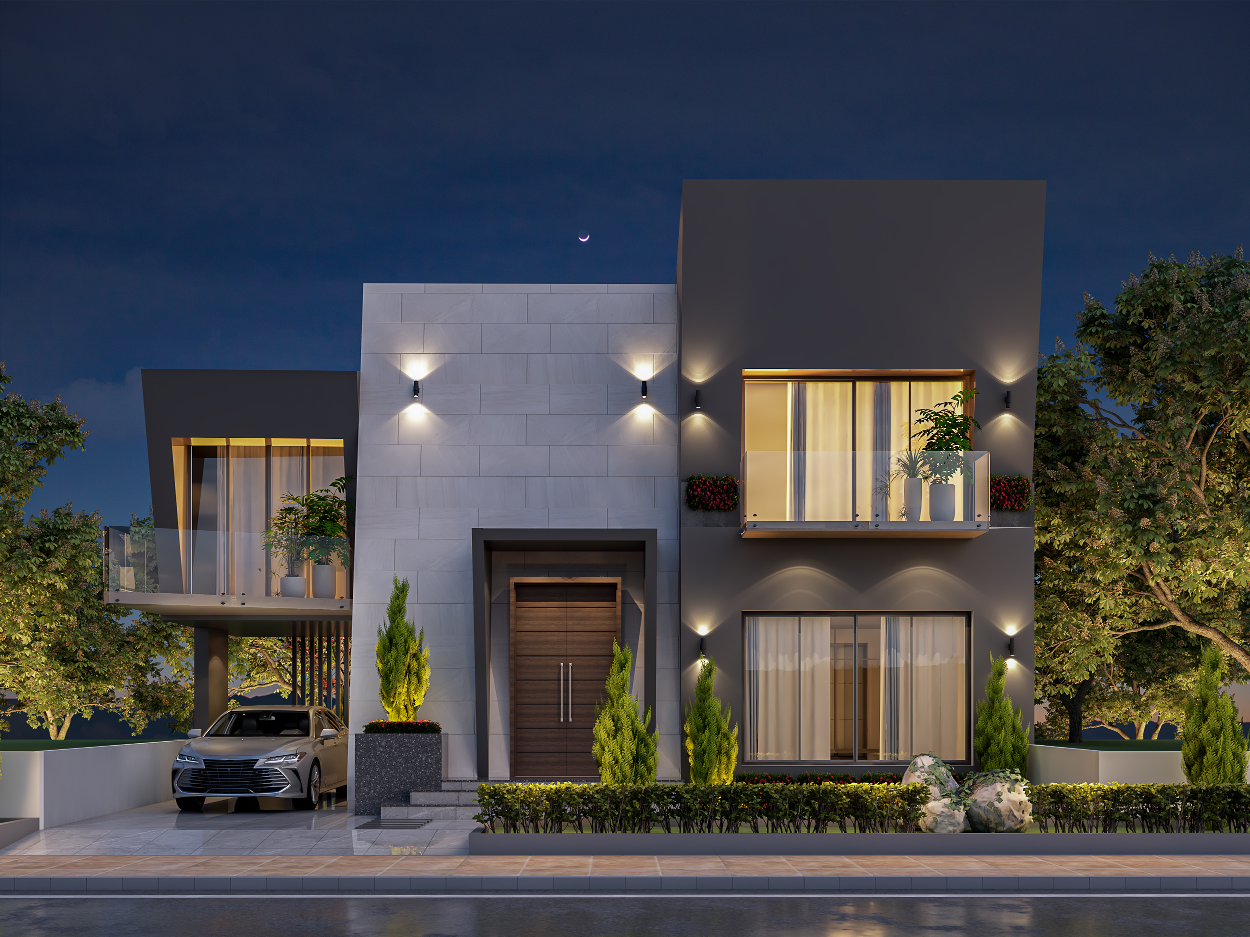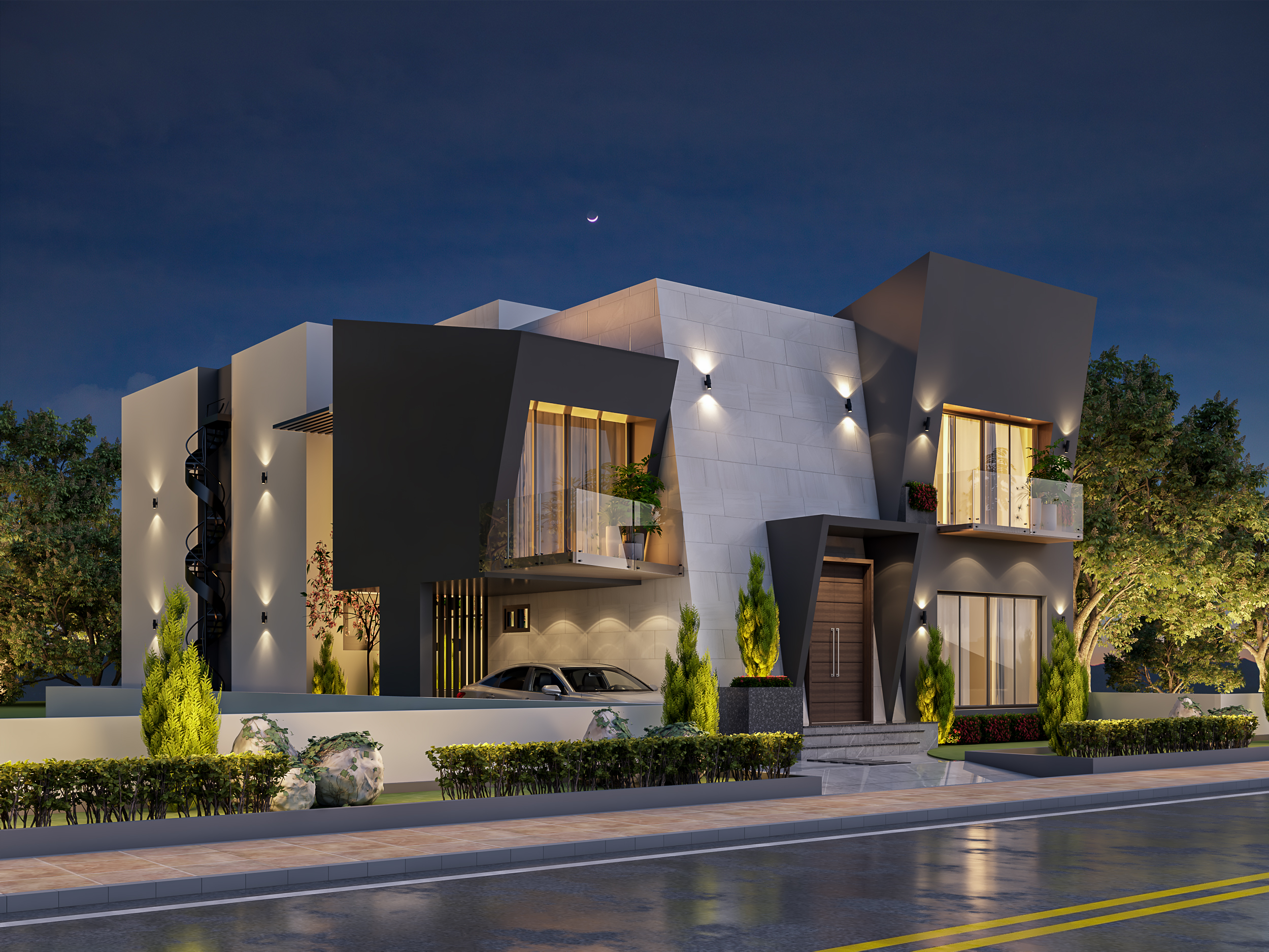 The Dancing House is a unique architectural masterpiece designed for Mr. Umer in Gulberg Greens. Its dynamic form and flowing lines create a sense of motion, making it stand out as an iconic residential design.